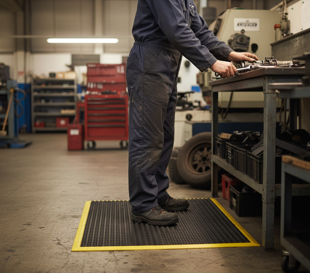 - Reduces fatigue and discomfort for employees standing for prolonged periods.